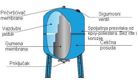 • Vertikalna hidroforska posuda sa postoljem.