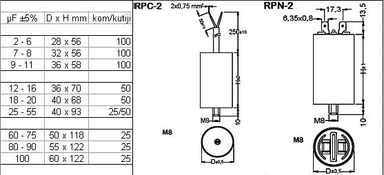| RPC.2-06 | kondenzator 6µF 450V kabli, M8 navrtanj |